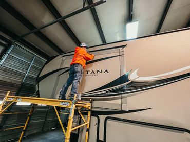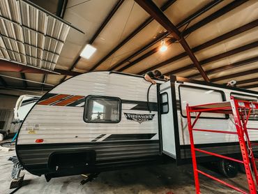One of our technicians is finishing up on an 360 fifth wheel reseal application.